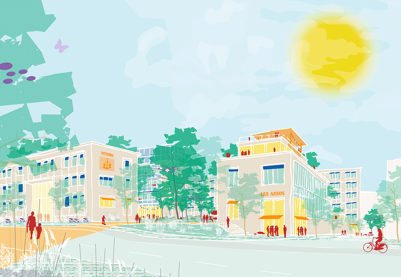 MGAU architecte urbaniste mandataire, avec Richard Klein, expert du patrimoine, Thomas Chavanes paysagiste, Atelier Franck Boutté expert environnement, Bellastock spécialiste du réemploi et du transitoire, et les BET Poiema, SOLAB, VPEAS.